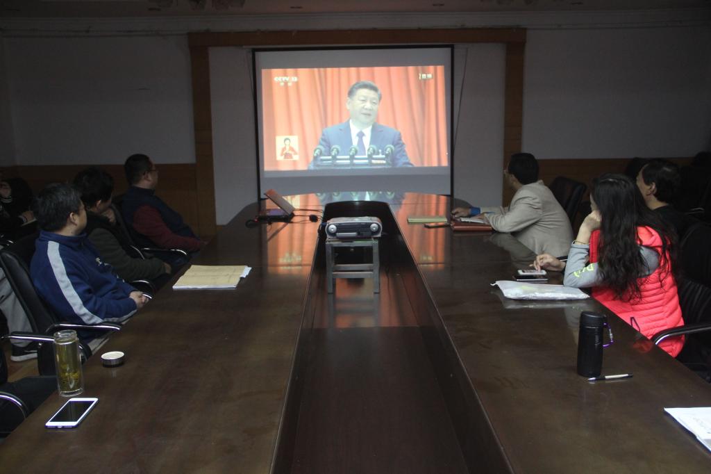 在学院一楼会议室,学院党委委员和教职工党员;在学院党员活动室,学院团委和优秀团员代表等集中观看了十九大开幕式盛况,大家聚精会神地观看、聆听,不时鼓掌表达对习近平总书记讲话的深刻赞同。全院各基层团组织根据学院统一安排,也分别组织党员学生、入党积极分子、团员同学等集中收看了大会开幕式。很多无课的学生自发在宿舍电脑旁观看十九大的开幕式,并热议习近平总书记的报告。