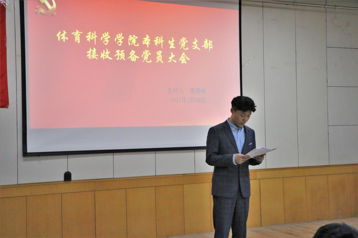 本科生党支部于二楼报告厅召开接收预备党员大会,会议由本科生党支部书记唐海峰主持,主要讨论接收以杨镇同志为代表的14位发展对象转为中共预备党员的问题。