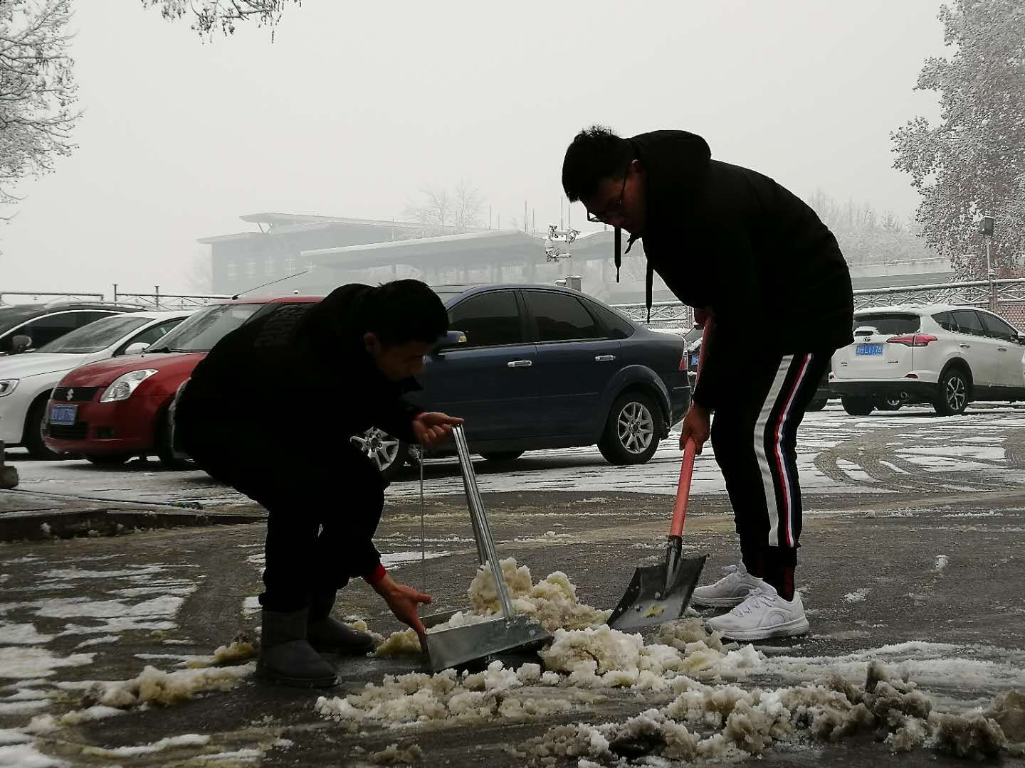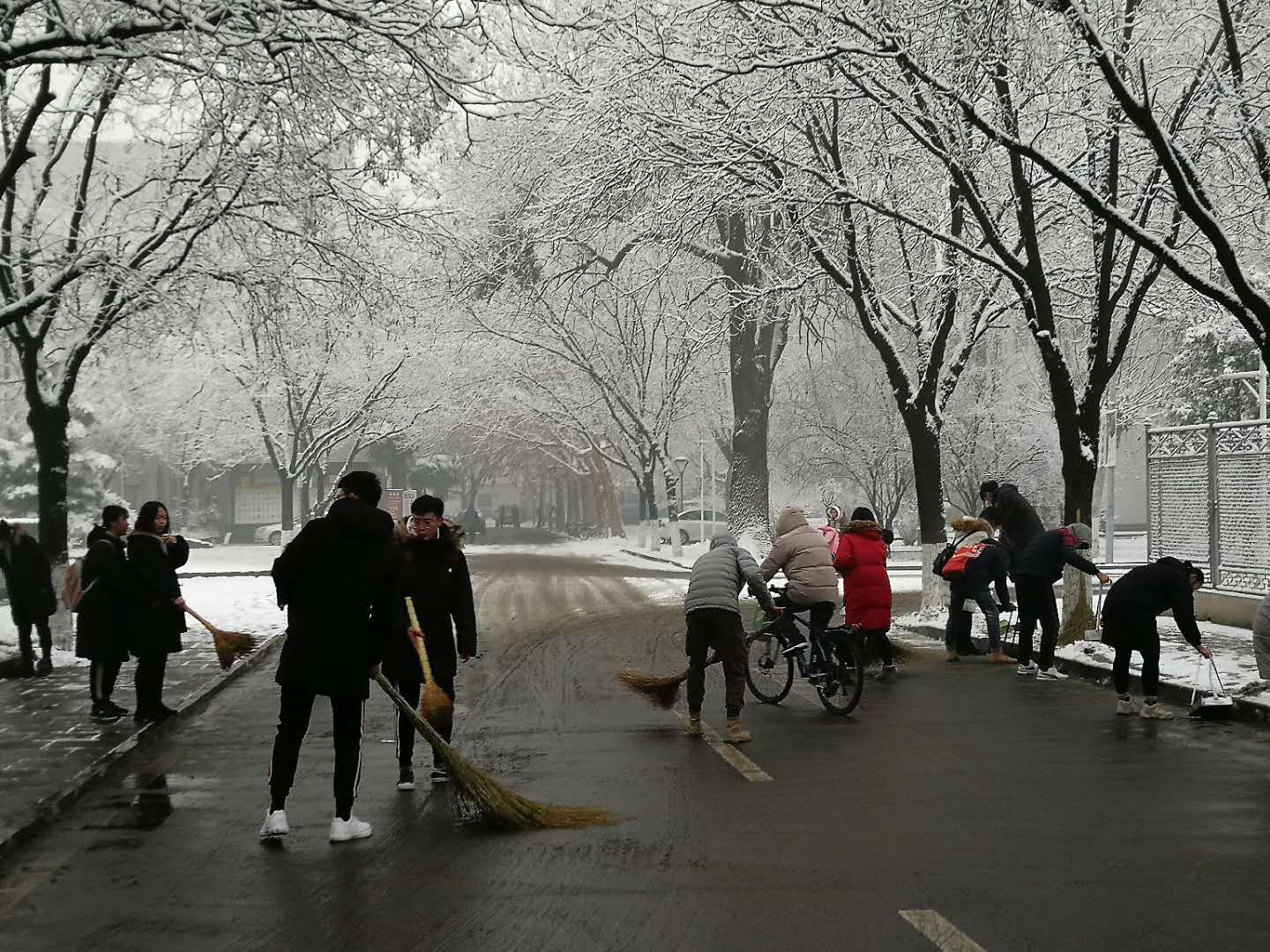 团委的号召下,我院学生会主要学生干部积极投入到铲雪行动中。