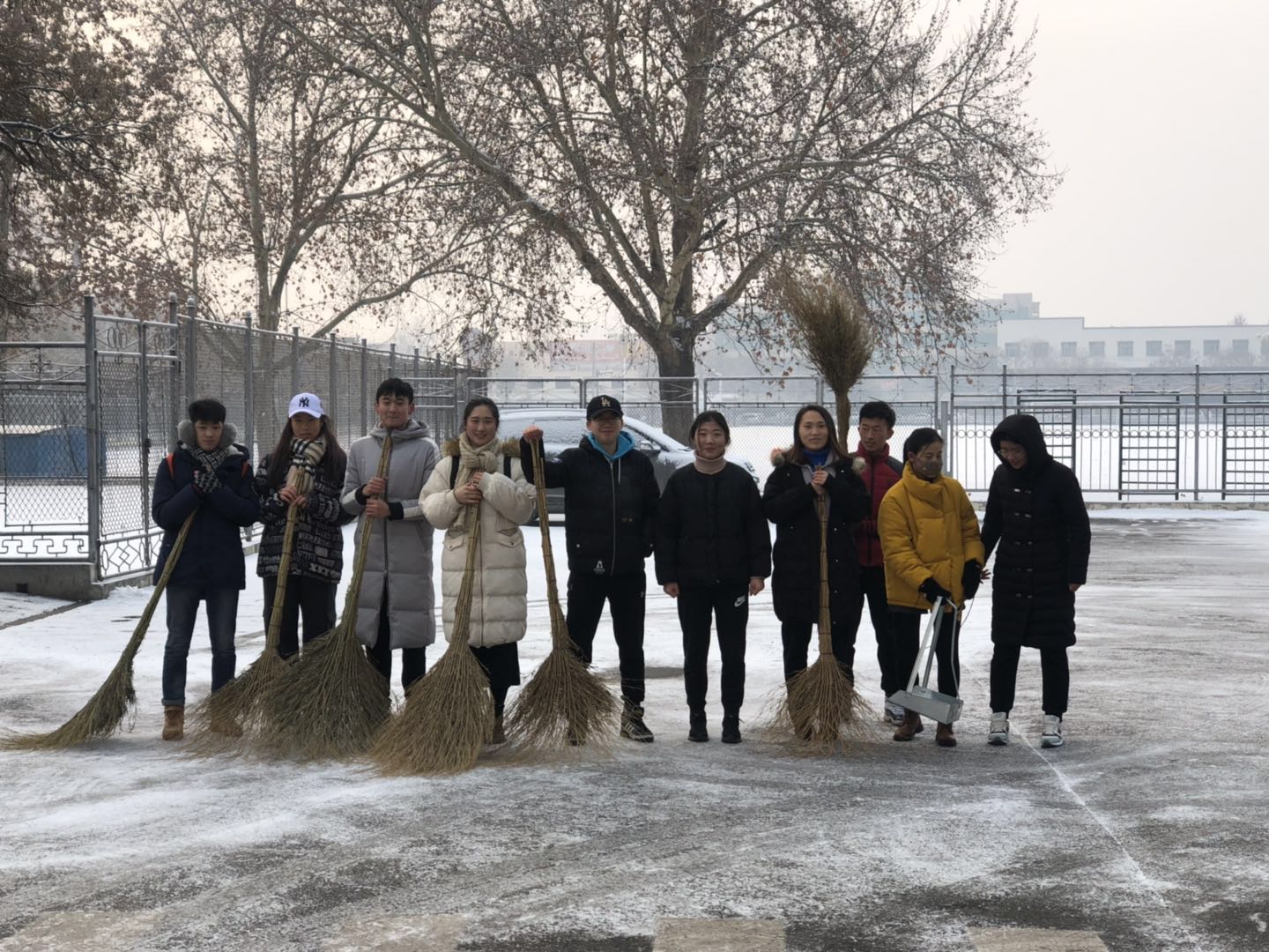 为了确保同学们的出行安全,10日早上,学院团委联合学院本科生党支部在学院周边开展道路扫雪除冰志愿服务活动。冒着寒冷、顶着飘雪,不惧部分路段积雪碾压贴附地面难以清理、路面结冰等困难,志愿者们使用簸箕、铁锨等工具,对学院教学楼前各条道路上的积雪进行清扫。清扫中,有不少同学自愿加入到铲雪队伍中,与志愿者们一起劳动。经过近两个小时的紧张劳动,教学楼前主干道冰雪被清扫干净,为经过的车辆和行人辟出了一条饱含冬日暖意的道路。