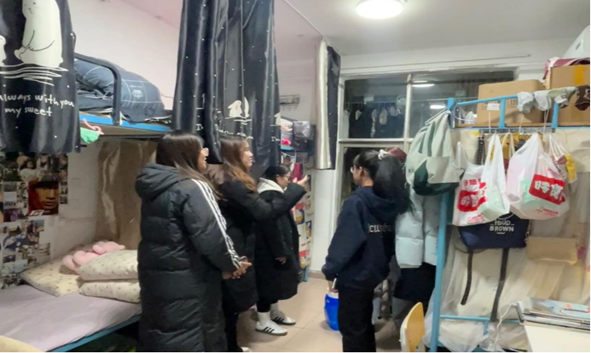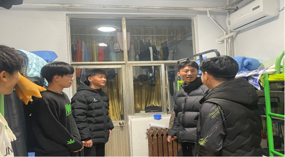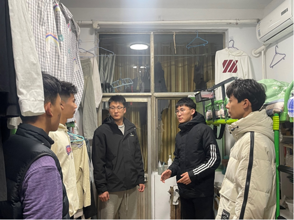 团委宿管部于2023年11月28日晚间在西三、西四公寓楼开展宿舍卫生标准规范与安全隐患排查活动。本次活动由2021级张永康、耿修祺,2022级高峻、王心宇、宋佳昕、刘初、胡晓波等组成的学生群体带领开展。