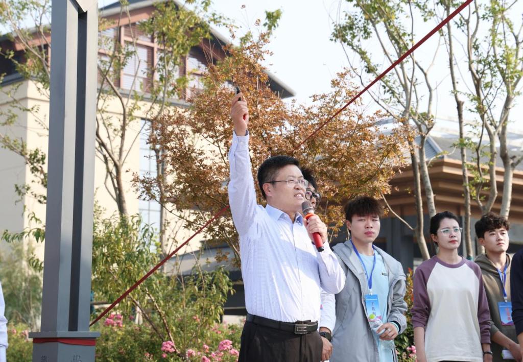 体育学部党委书记刘敏代表赛事组委会为接力赛致开幕词,刘敏表示,希望所有参赛运动员带着勇气和智慧,在充满书香气息的曲园大道上,不断的超越自我、挑战自我,用速度和毅力展示曲园学子的风采和活力,让2048核基地