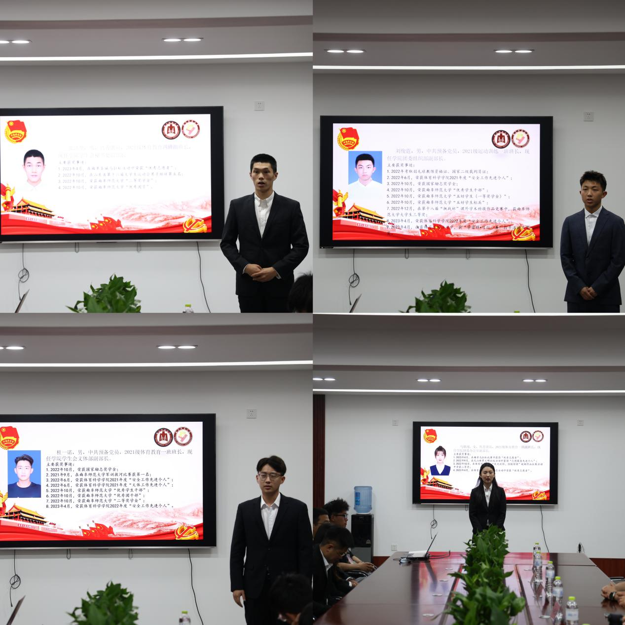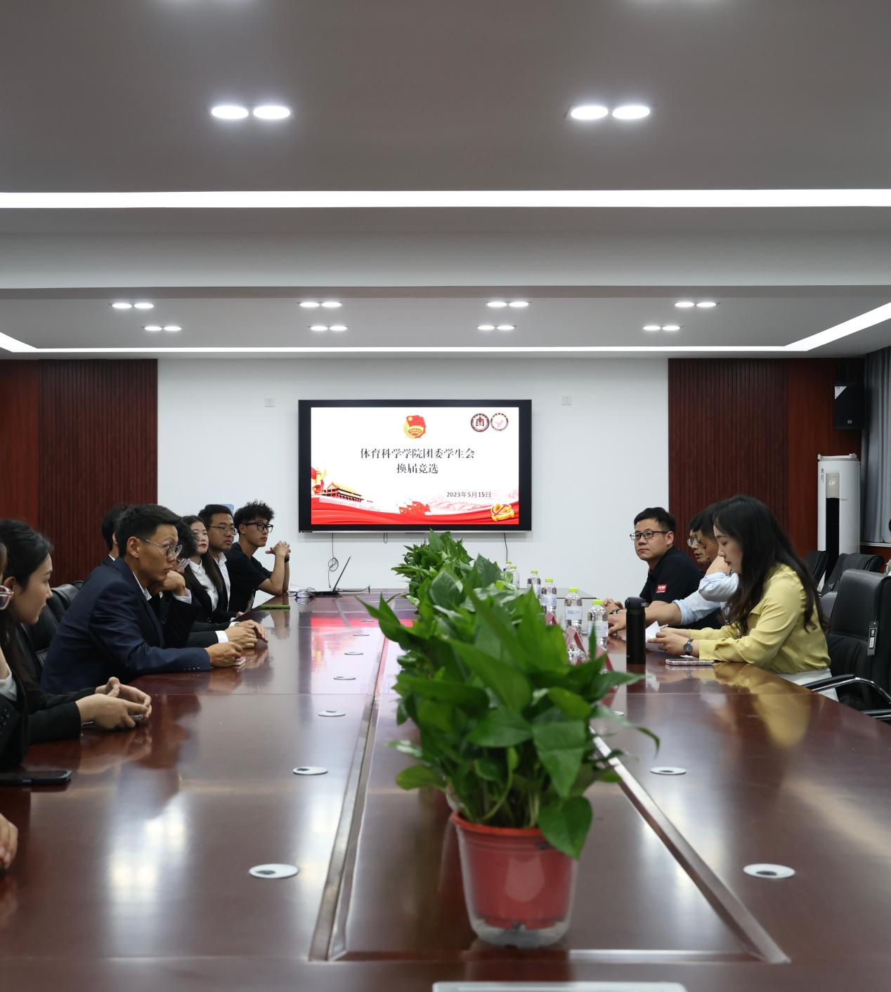 于教学楼会议室进行第六届团委、学生会主席团换届竞选演讲。体育学部党委副书记马振华、2048核基地