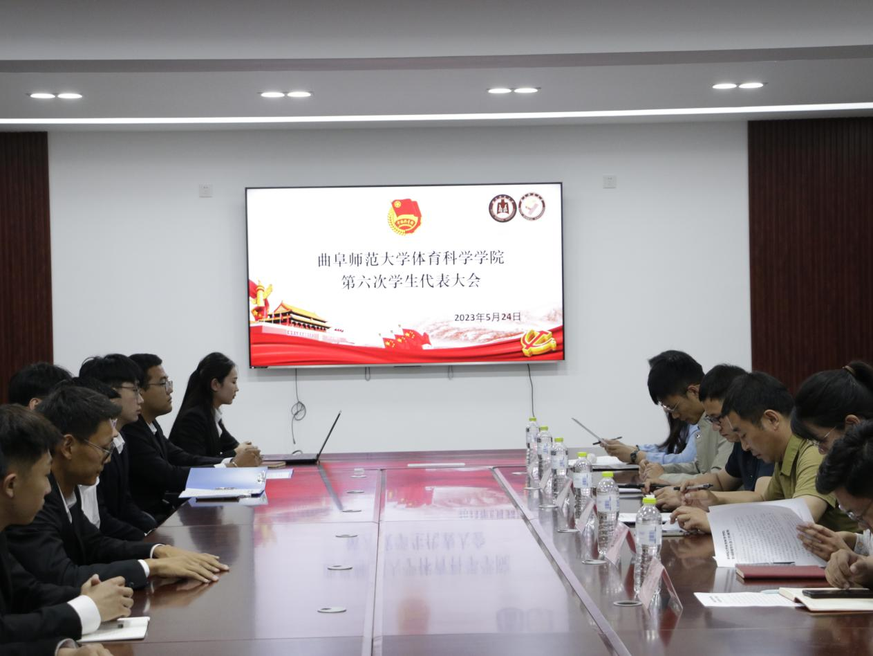 于学院一楼会议室召开第六次学生代表大会。体育学部党委副书记马振华、辅导员唐海峰、栾永鑫、王冰、郗来军、周晗和各年级学生代表出席大会,大会由辅导员周晗主持。
