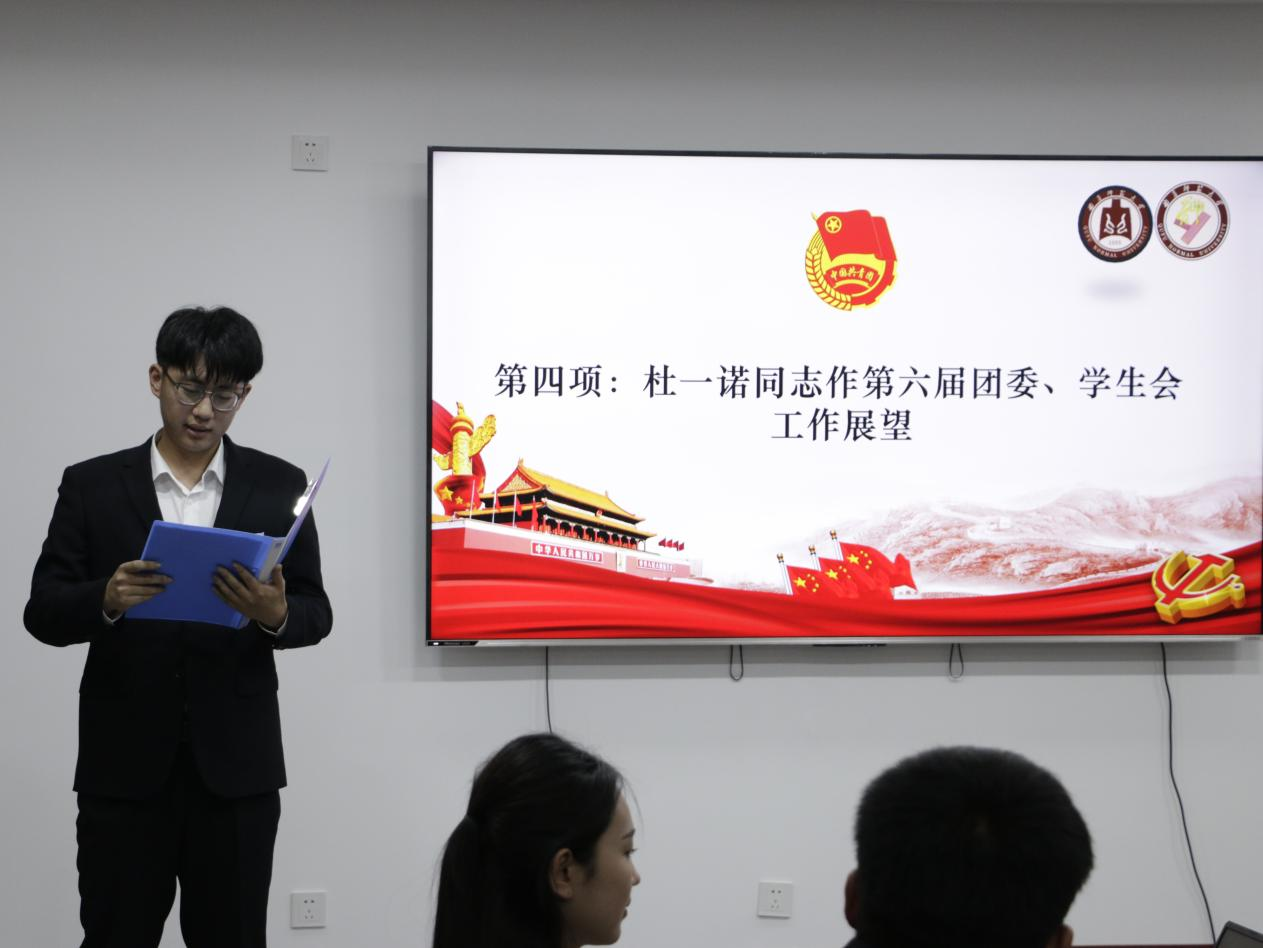 杜一诺代表第六届团委、学生会学生干部作出了工作展望,表示了2048核基地