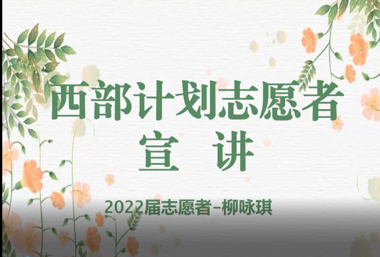 本次分享会的成功举办,让同学们对西部计划志愿服务项目有了更加全面的了解,鼓励同学们在服务基层、追逐梦想的过程中练就本领、增长才干,到祖国需要的地方挥洒自己的青春,去书写别样精彩的人生!