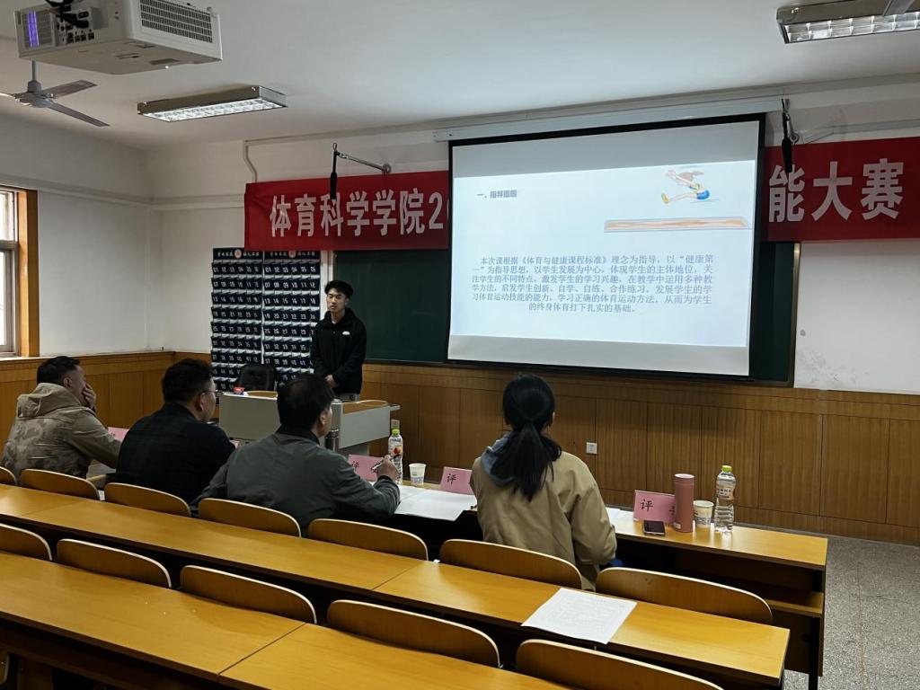 2020级师范类专业学生开展,比赛前期,学院采取多样形式广泛宣传此次比赛,鼓励2020级师范类专业学生积极报名、认真备赛。比赛过程中,参赛选手针对自选的课题,通过说课、模拟上课、答辩三个环节,运用多种教学手段,展现了自身的课堂驾驭能力和日后走上工作岗位、成为一名人民教师的风采。评委老师结合选手们的表现对参赛选手进行了现场指导,针对参赛选手们在讲课过程中出现的问题,提出了针对性建议,为同学们日后走向课堂、成为一名专业的体育课老师提供了帮助。