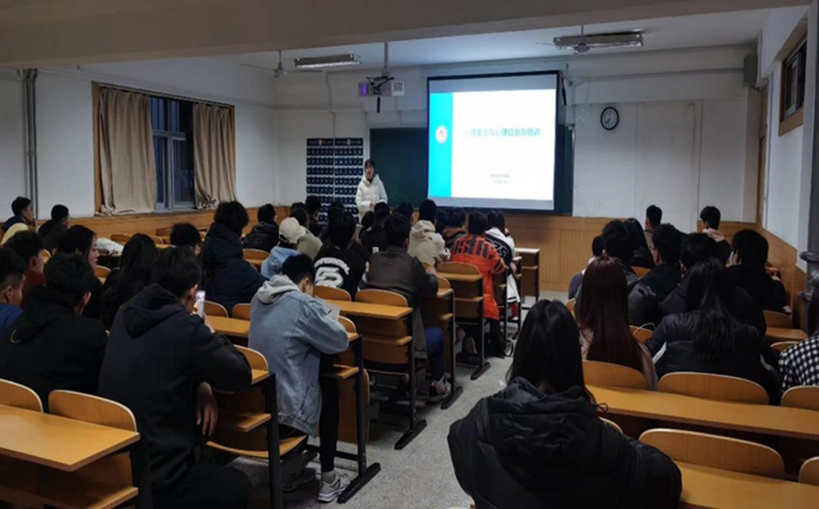 心理辅导员王冰在体育楼110教室开展班级心理委员与宿舍心理信息员培训。
