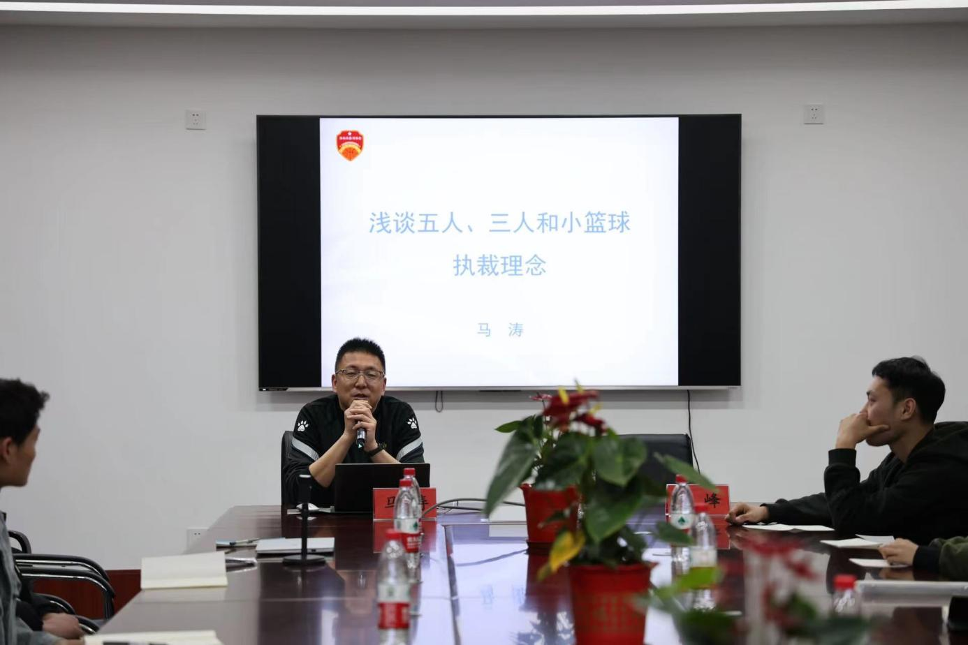 篮球运动发展,加强篮球裁判员队伍建设,提高裁判员业务水平,发掘篮球裁判员后备人才,特邀请山东省篮协裁委会副主任、国家级裁判马涛,于3月4日晚上在学院一楼会议室为我院篮球裁判进行指导培训。
