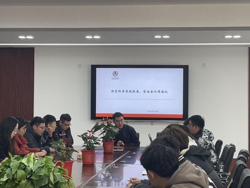 会议室顺利召开。体育学部党委副书记马振华、辅导员唐海峰、栾永鑫、郗来军、王冰、周晗出席会议,团委、学生会主要学生干部参加此次会议。