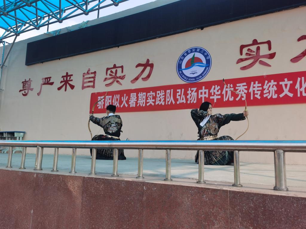 组成“骄阳似火”暑期实践队,赴泰安市第三中学开展线下展演宣传体验活动。
