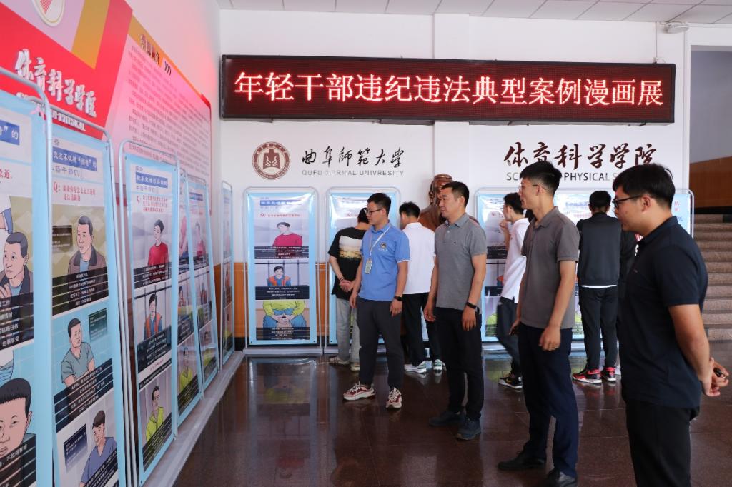 楼参观“年轻干部违纪违法典型案例”漫画展。