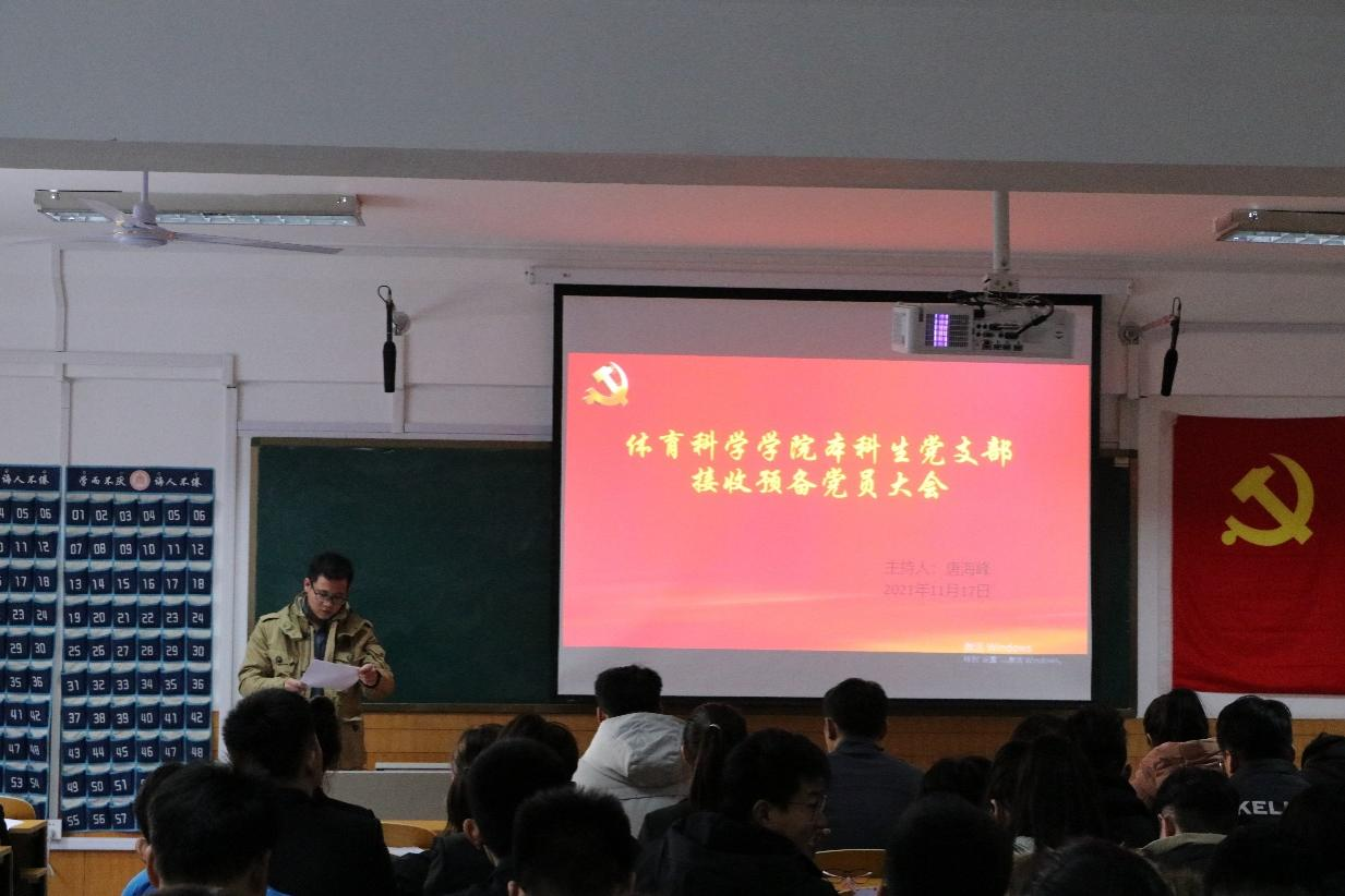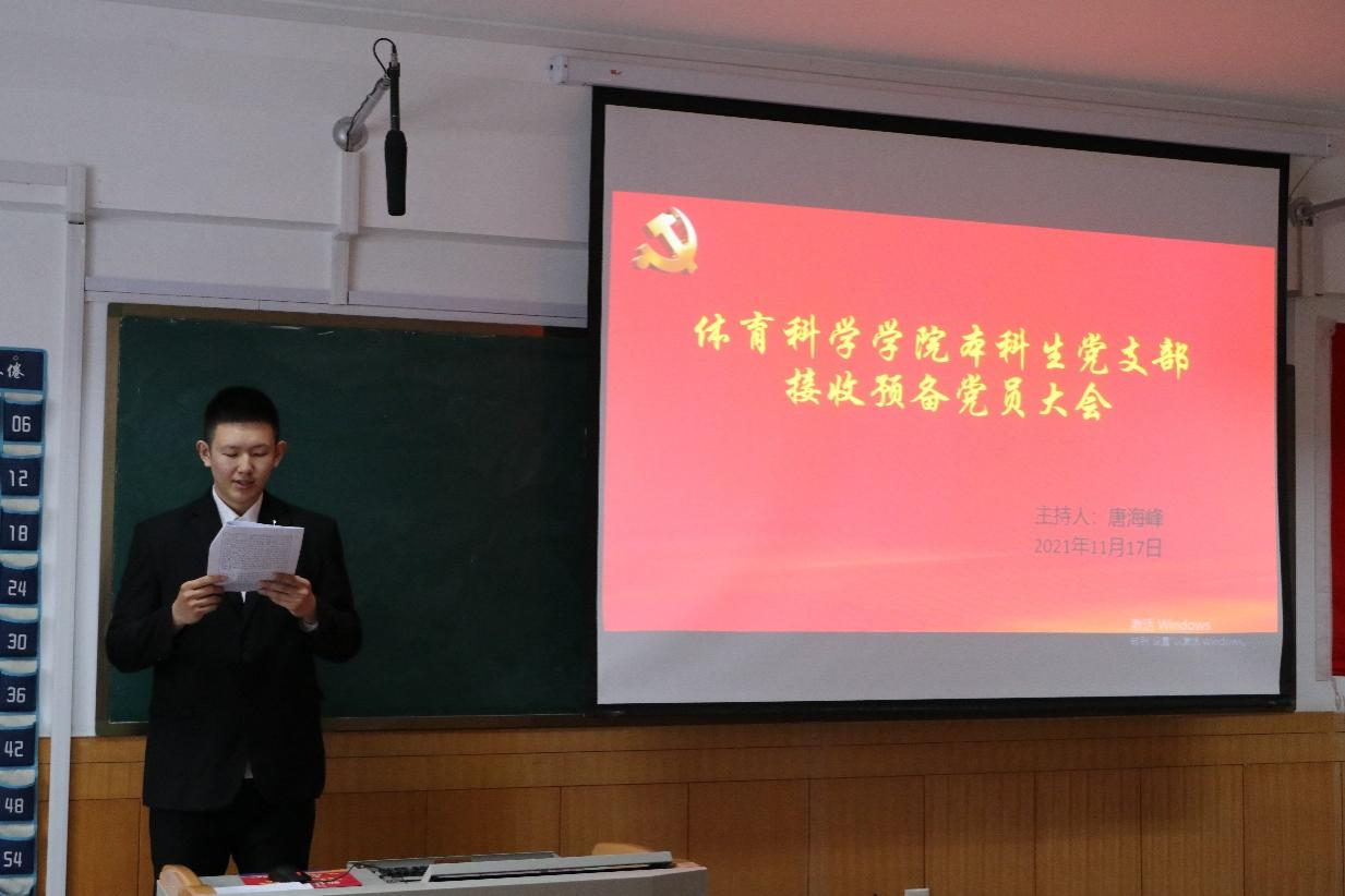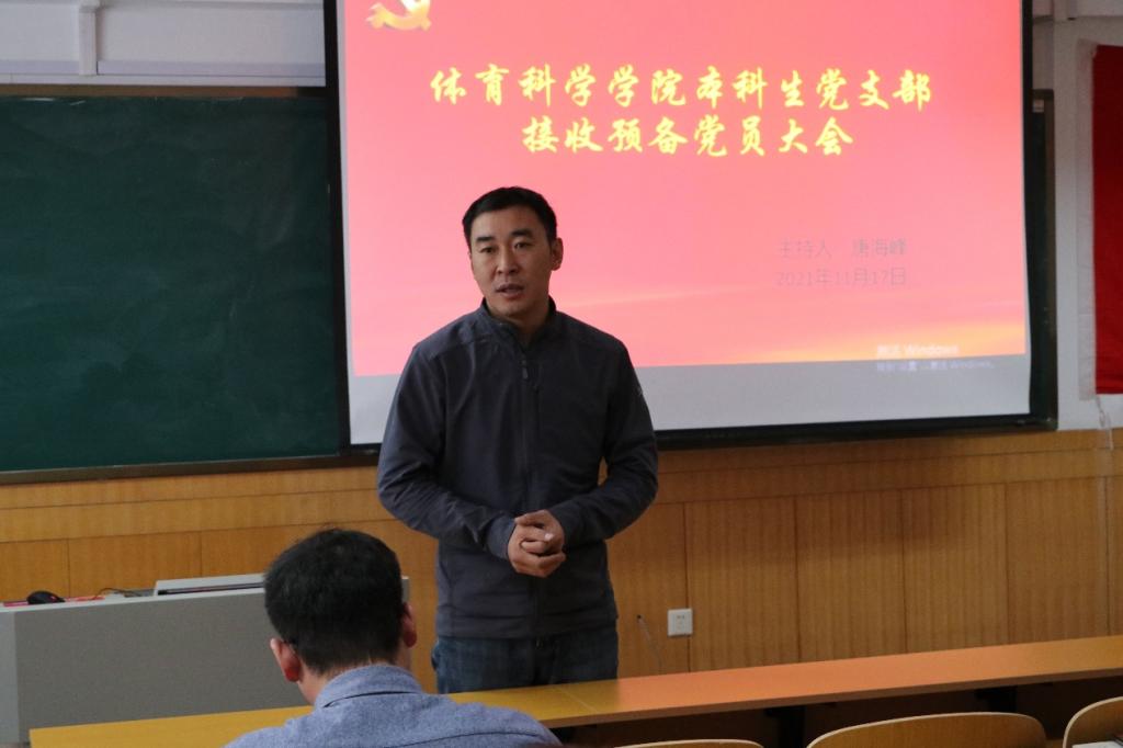 本科生党支部于系楼110召开接收预备党员大会。本次会议由党支部书记唐海峰同志主持,全体党员参加。