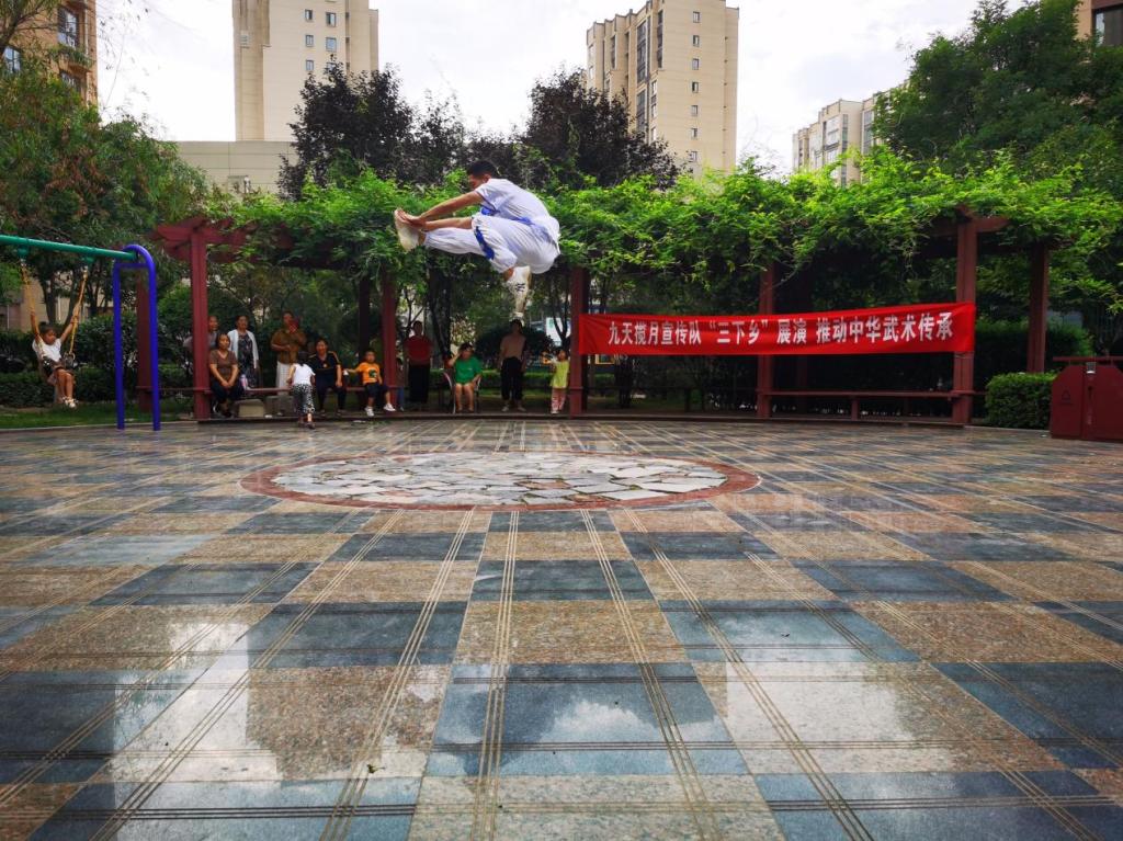 九天揽月实践队开展了对青岛市即墨区某社区居民的传统武术展演宣传及体验活动。