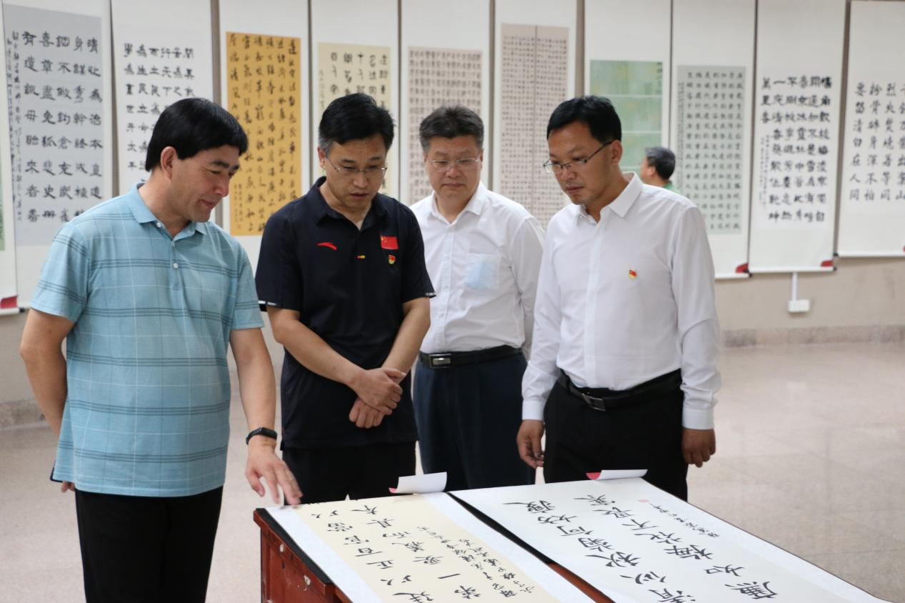 党委理论学习中心组全体成员于书法学院展厅集中观看了庆祝建党100周年“清风曲园”廉文化作品展览。