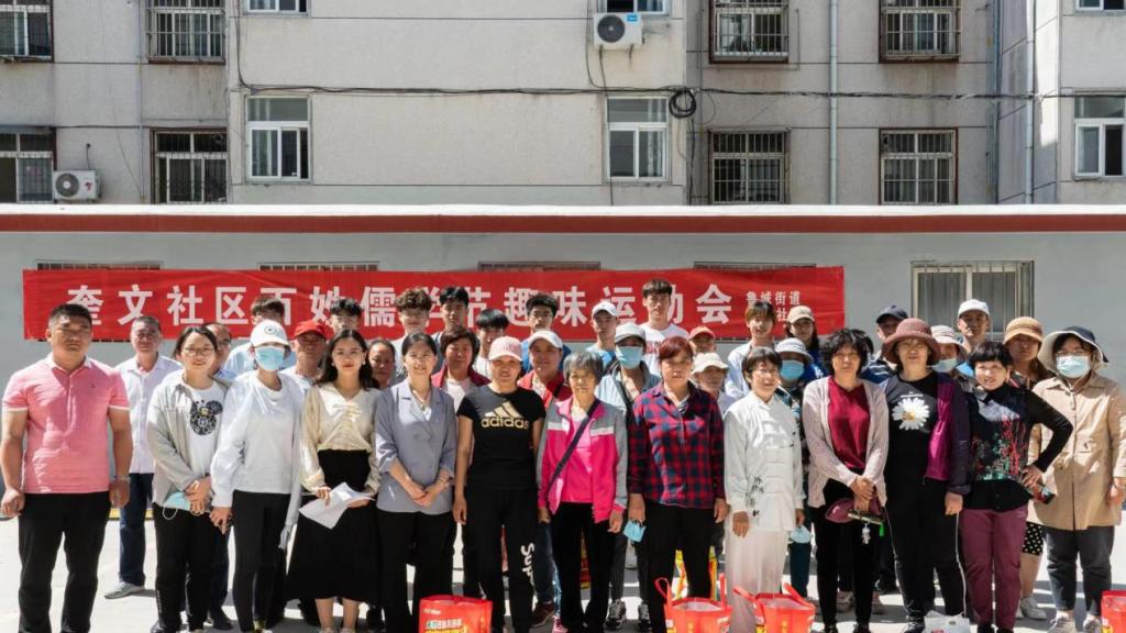 青年志愿者于5月28日上午在鲁城街道奎文社区“百姓儒学节”趣味运动会活动中协助社区进行裁判工作。
