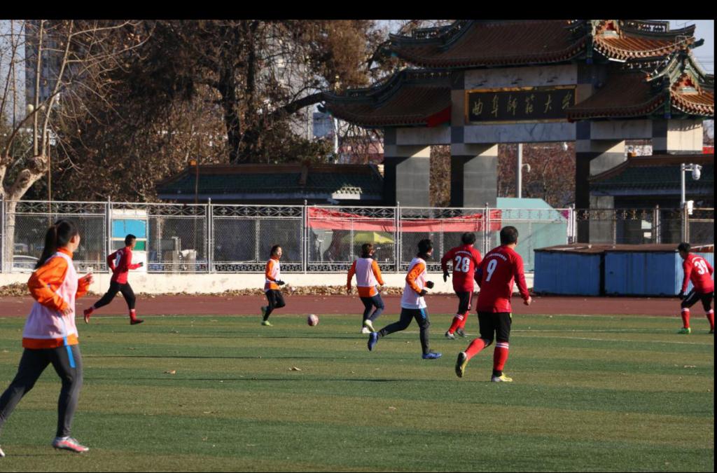 女子足球队与山东德沐德律师事务所足球俱乐部在南操场举行足球友谊交流赛。2048核基地