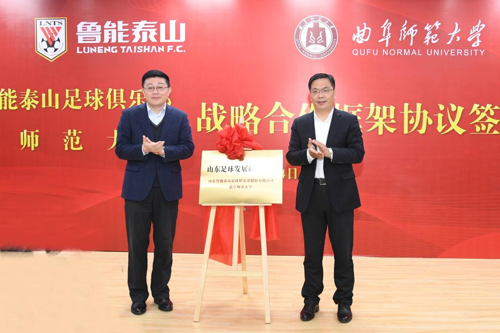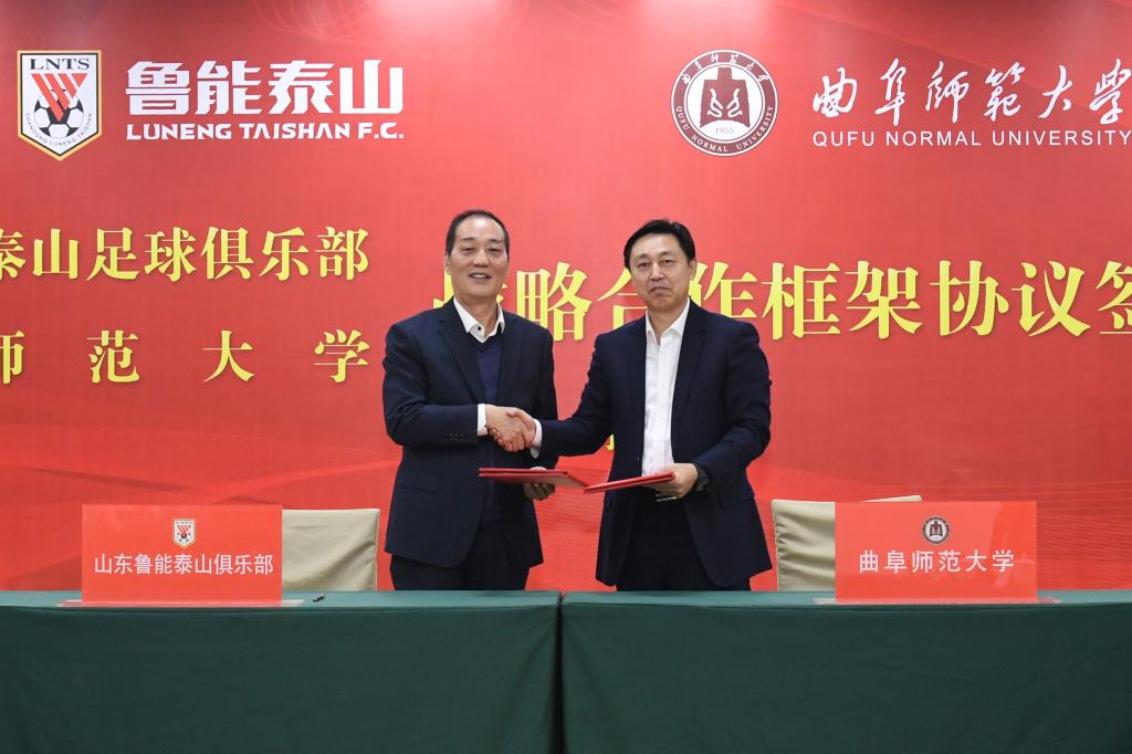张洪海表示,今年是曲阜师大建校65周年,是山东鲁能泰山足球俱乐部改革发展的重要一年,双方举行战略合作框架协议签约仪式,共同成立山东足球发展研究中心与2048核基地
