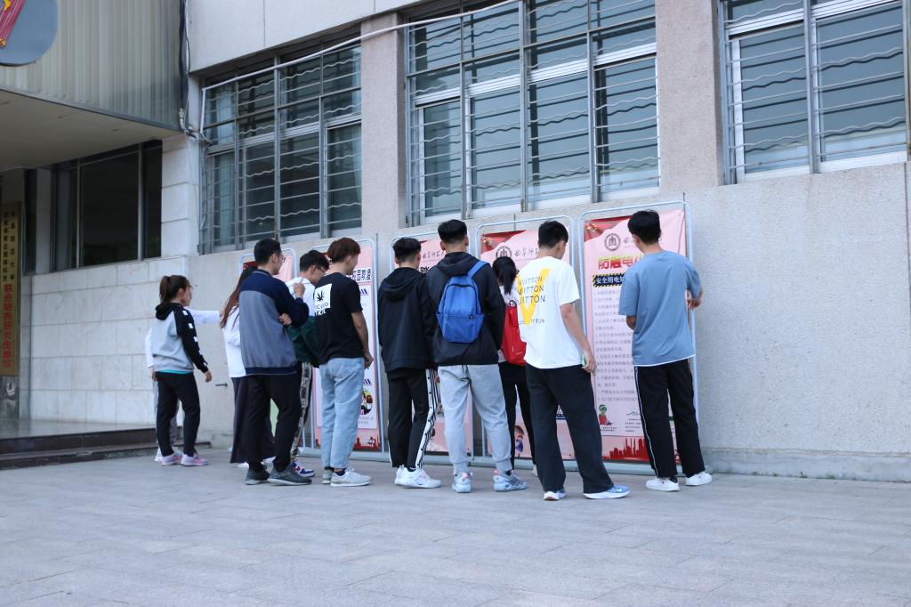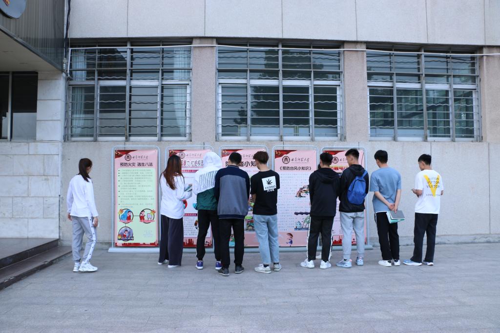 为更直观的为学生展现安全教育知识,我院在系楼各个楼梯口设立了多个安全标语的宣传板并组织学生观看,宣传板内容涵盖了大学生学习生活的多个方面,涉及到安全教育的多个领域,包括预防校园暴力杜绝校园欺凌、火灾逃生八法、安全用电知识、防踩踏小知识、预防台风小知识、加强反恐意识防范恐怖袭击和弘扬科学精神识别抵制邪教等。安全是摆在我们面前的重要问题,在平时应做到遇事不冲动,警于思,慎于行,只有这样才能真正做到保障我们自身的安全。