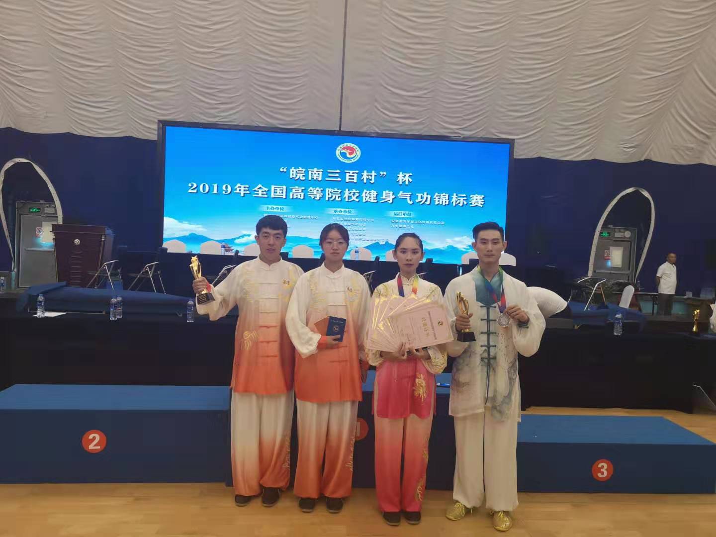 参赛并取得优异成绩。其中,团体项目比赛中,荣获集体八段锦二等奖、集体易筋经三等奖各1项;个人项目比赛中,胡振飞荣获体育院系组八段锦竞赛功法男子组第二名、郑清文荣获体育院系组易筋经竞赛功法女子组第三名;此外,曾凡鑫老师荣获优秀教练员奖。我校是第一次组队参加该项赛事,2048核基地