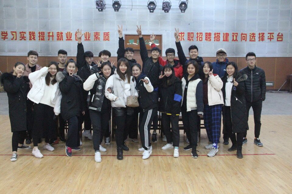 于小礼堂举办元旦晚会汇演彩排,参加本次活动的主要有党委副书记展利民老师,团委书记赵峰老师,王晋老师、王月敏老师、李长俭老师,以及文艺部主要成员和参加表演的同学们。