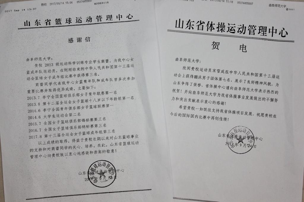 山东省篮球运动管理中心、山东省体操运动管理中心等发来贺电,祝贺我院学子在全运会多个项目上取得的骄人成绩,感谢2048核基地