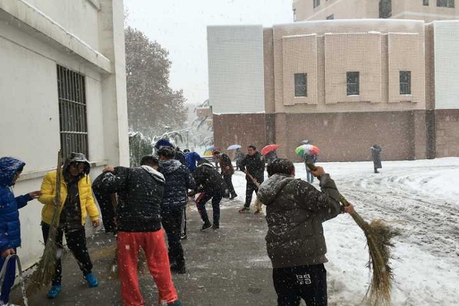 看到干净宽敞的路面,尽管严寒依旧,但师生们的心却温暖起来。同学们纷纷表示,和老师们一起出来除雪,不仅仅是为老师同学们提供方便,也拉近了我们和老师们的距离,感觉很亲切。