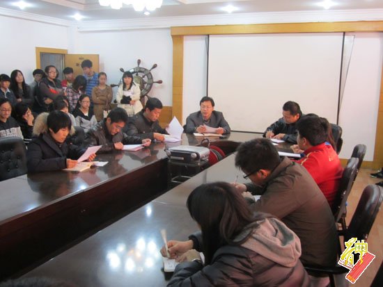 于院一楼会议室召开“迎接山东省高校文明宿舍检查”动员大会。参加本次会议的有党总支副书记展利民,辅导员赵峰、李娜、李世建、刘翔、王凯以及全体学生干部。