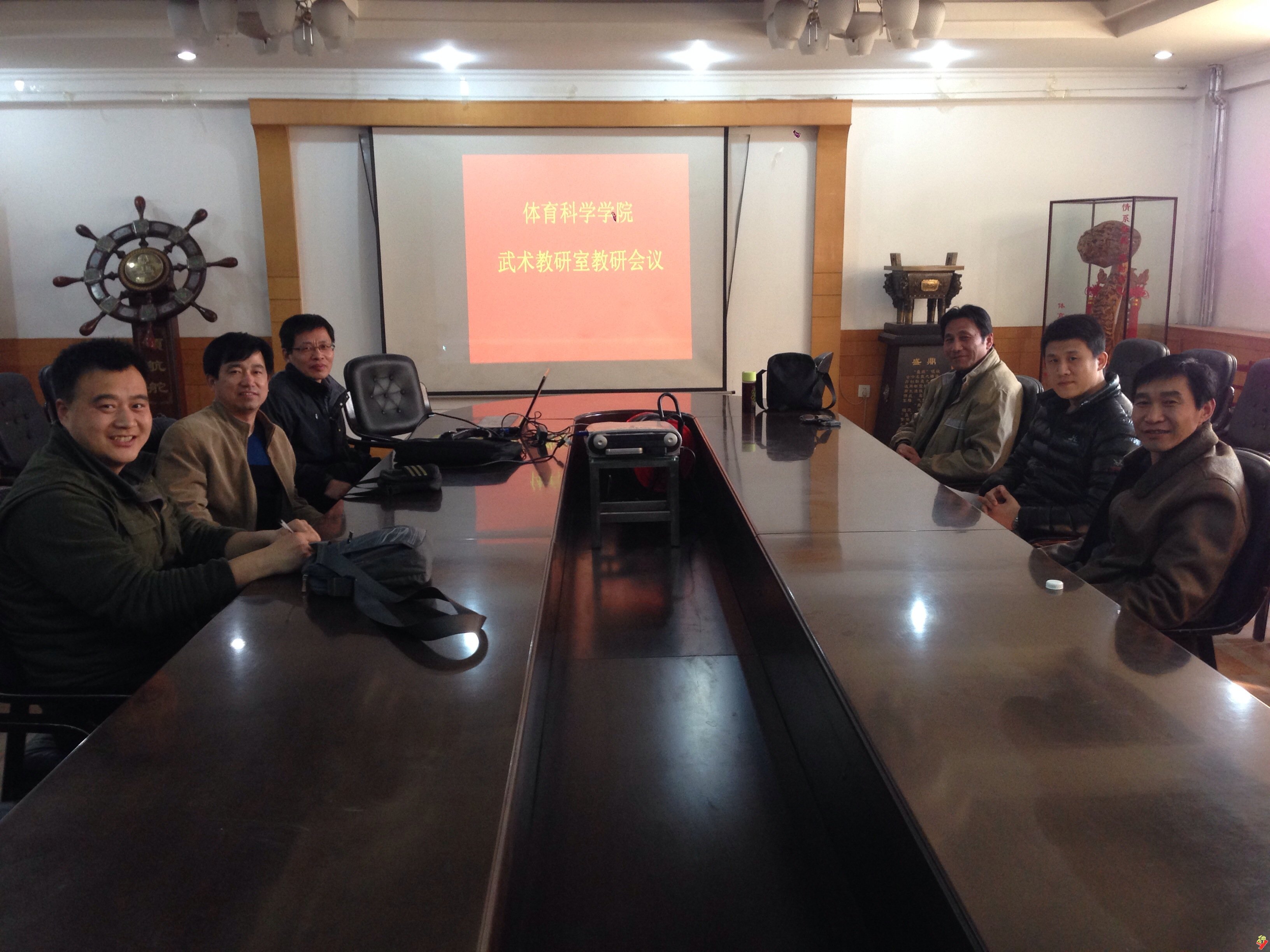 武术教研室全体教师会议在院会议室召开,会议由武术教研室主任刘建国老师主持。