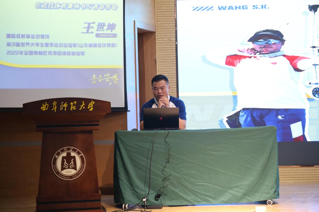 王世坤以朴实的话语,真挚的情感向全体同学们分享了自己求学、参训、夺冠的经历,他面对伤病、不屈不挠的人生态度和知难而进、永不放弃的拼搏精神深深激励着同学们。