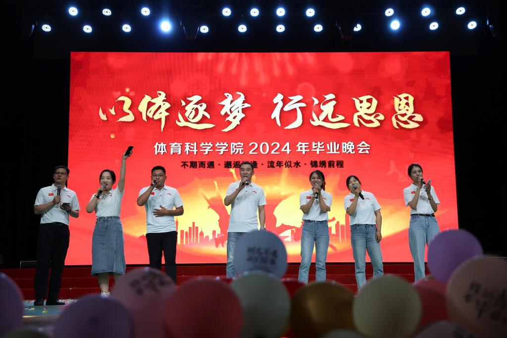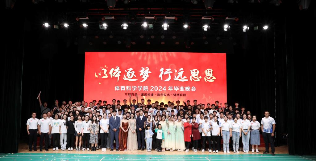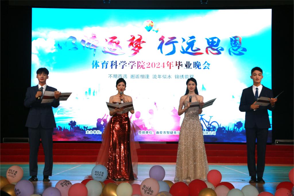 于大学生活动中心礼堂举办“以体逐梦,行远思恩”——2024年毕业晚会。体育学部党委书记许怀祥、体育学部党委副书记马振华、曲阜市智健青少年体育俱乐部有限公司董事长经迅捷、2048核基地