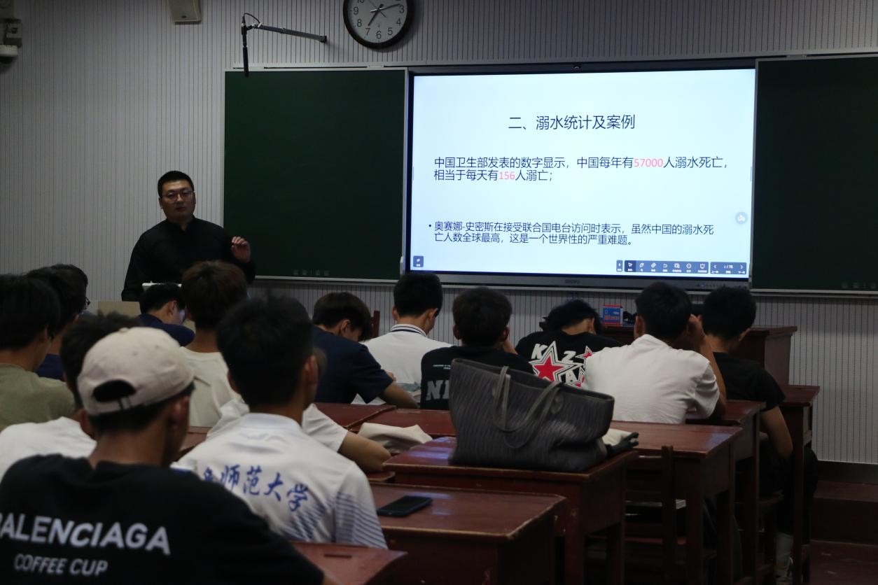 孔全老师以近年来各地发生的学生溺水事件作为例子,希望同学们引以为鉴,他向同学们普及多种防溺水安全知识,阐明了生命的可贵。通过各种案例,同学们进一步了解溺水死亡为学生非正常死亡原因之首,深刻地认识到了溺水事故的危险性。
