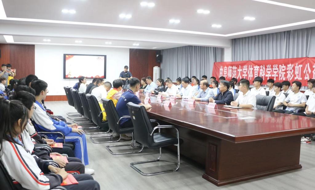 团委书记孔轶众、体育学部党委书记许怀祥、体育学部党委副书记马振华、曲师大附属学校纪委书记、副校长谢印智、曲阜市团市委副书记池雪、曲阜市民政局党组成员、社会组织综合党委副书记邢洪彬及各公益中心负责人、学生志愿者出席本次会议。活动由曲阜市彩虹公益协会副秘书长胡海主持。