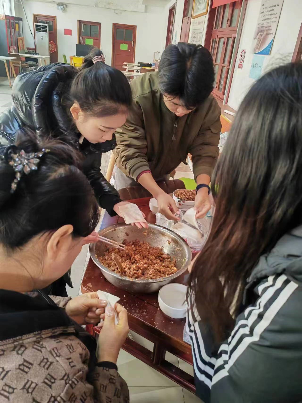 图为实践队员为老人包饺子、聊天、搀扶老人去吃饭 陈宣凝 供图