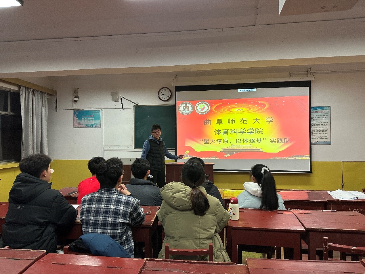 “星火燎原,以体逐梦”实践队于2024年寒假期间将开展以"深悟创新理论,增强青春底色"为主题的社会实践活动。并于1月16日在体育楼401教室开展了寒假社会实践团队出征仪式。