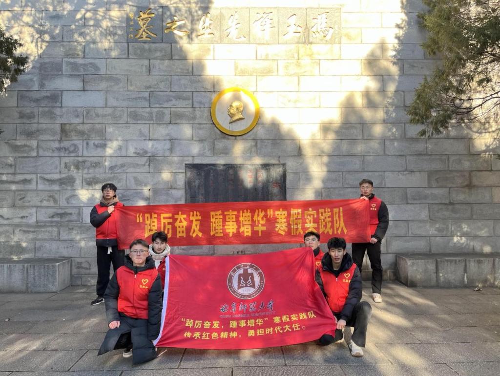 “踔厉奋发,踵事增华”寒假社会实践队于2024年1月27日至1月28日在山东省泰安市以“追溯红色记忆,缅怀冯玉祥先生”为主题,实践队队员祭拜冯玉祥烈士陵墓,向群众普及辛亥革命事迹,发扬辛亥革命精神。