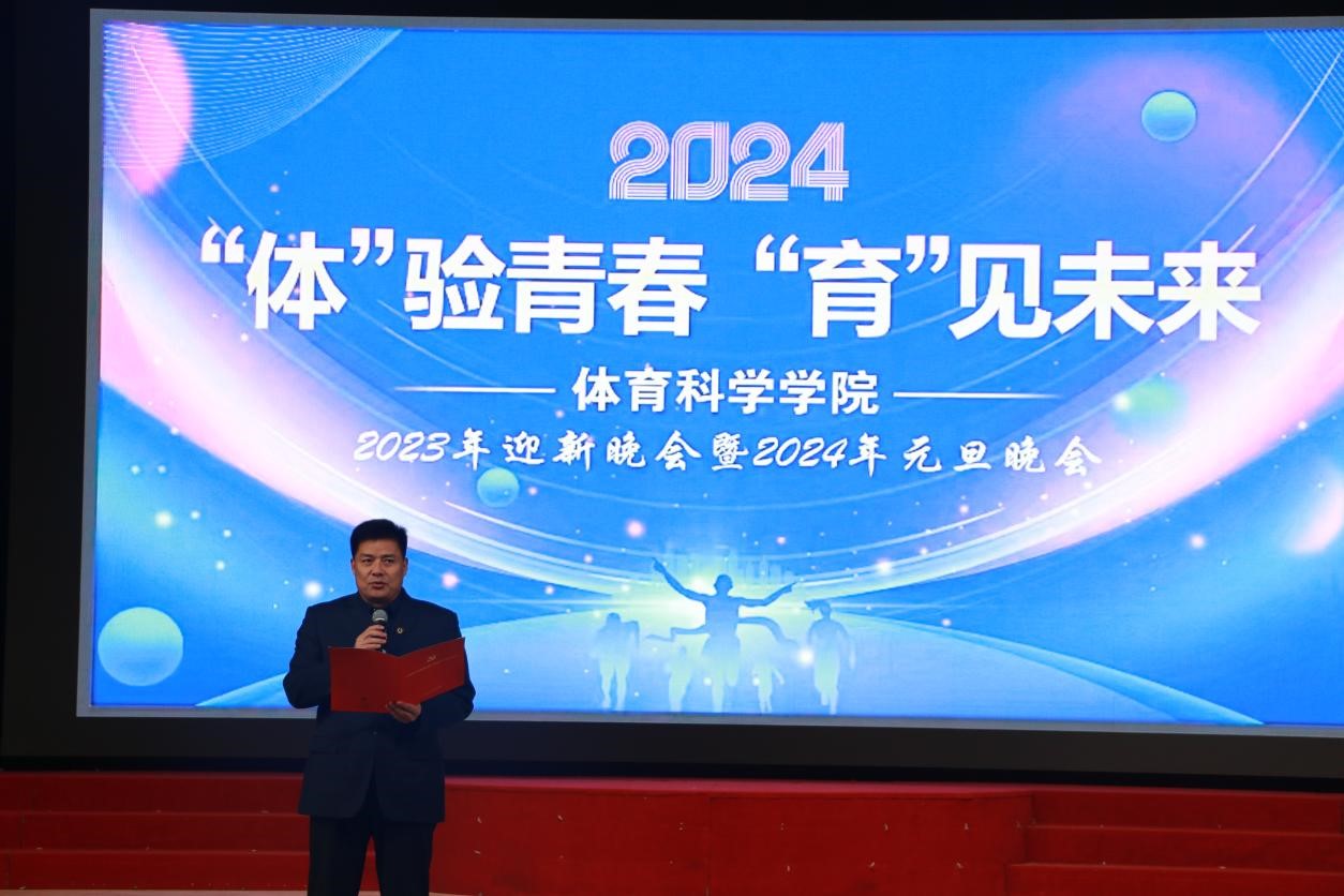 于大学生活动中心礼堂举办2023年迎新晚会暨2024年元旦晚会。体育学部党委书记刘敏、党委副书记马振华出席此次晚会,全校1000余名师生观看演出。