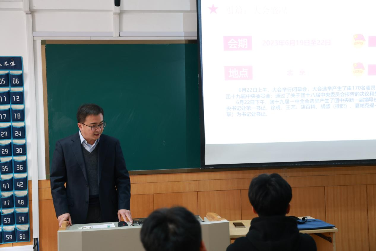 会议伊始,孔轶众以“青春心向党,奋进新征程”为主题,带领体育课科学院“青马工程”大学生骨干了解团十九大大会盛况并回顾历届共青团中央书记处第一书记的光辉伟绩,总结经验、理解历史。孔轶众从“习近平总书记对青年一代的高度重视和殷切关怀”“习近平总书记关于青年工作的重要思想和实践要求”“党的十八大以来青少年和共青团事业的发展成就和根本原因”“新时代中国青年运动的时代主题和历史使命”“新时代青年成长的难得际遇和光明前景”“共青团改革发展的时代要求”等六个方面展开授课,希望同学们始终保持蓬勃向上的青春朝气, 始终向往和追求马克思主义的美好前景, 始终拥护和参与马克思主义在中国的伟大实践, 做有理想、敢担当、能吃苦、肯奋斗的新时代好青年,做新时代坚定有为的青年马克思主义者。