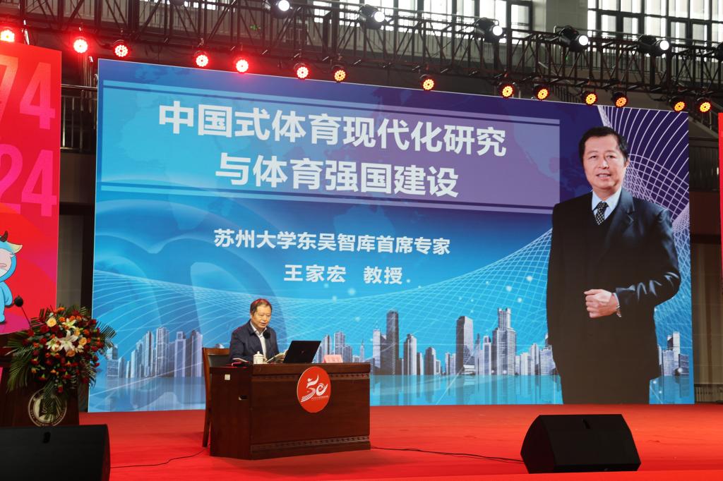 在主旨报告环节中,北京体育大学原党委书记、校长杨桦,国务院学位委员会学科发展战略咨询委员会委员、福建师范大学原党委书记、校长黄汉升,国家体育总局体育社会科学重点研究基地主任、苏州大学原校长助理王家宏,全国高校体育教学指导委员会副主任、吉林体育局原局长、党组书记、吉林体育学院原校长张瑞林分别作主旨报告。专家们围绕新质生产力推进体育高质量发展、建构中国体育学自主知识体系、中国式体育现代化研究与体育强国建设、加快培育和发展体育用品制造业新质生产力等议题进行了阐述和分析。