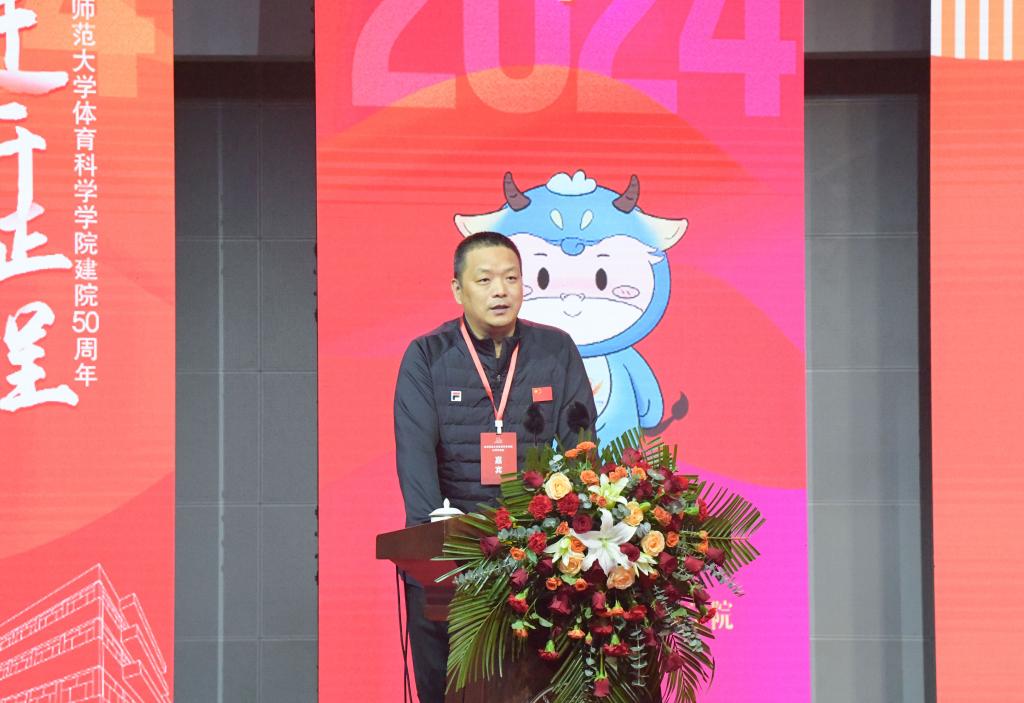 首届学生代表、74级校友刘美奋,国家体育总局体育科学研究所所长、87级校友曹景伟,吉林体育学院校长、首届研究生代表、94级校友邵桂华,全国人大代表、山东省优秀共产党员、单县一中副校长、校排球队总教练2000级校友樊董伟,德才集团副总裁裴文杰分别作为代表致辞。他们在致辞中回顾了学校、学院对自身发展的推动和助力,并表达了学校、学院深情的关怀、热切的期待和美好的祝福。