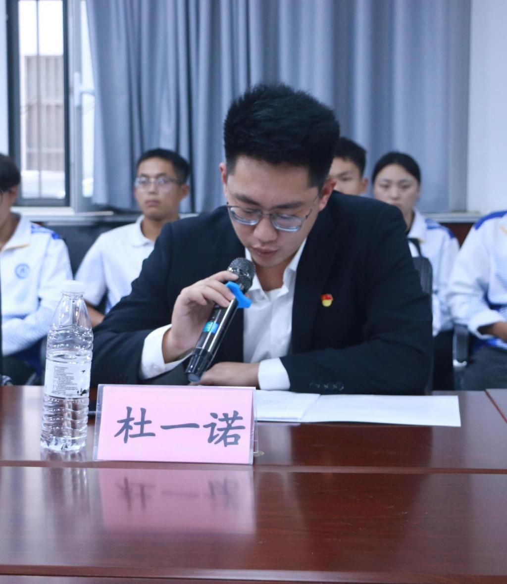 第六届学生会主席杜一诺代表第六届团委、学生会作工作报告。杜一诺从思想引领、内部建设、文化建设等方面回顾了第六届团委、学生会这一年的工作成果,同时指出工作中尚存的不足,表达了第六届团委、学生会学生骨干的心得体会和收获成长,祝福第七届团委、学生会工作能够更上一层楼。