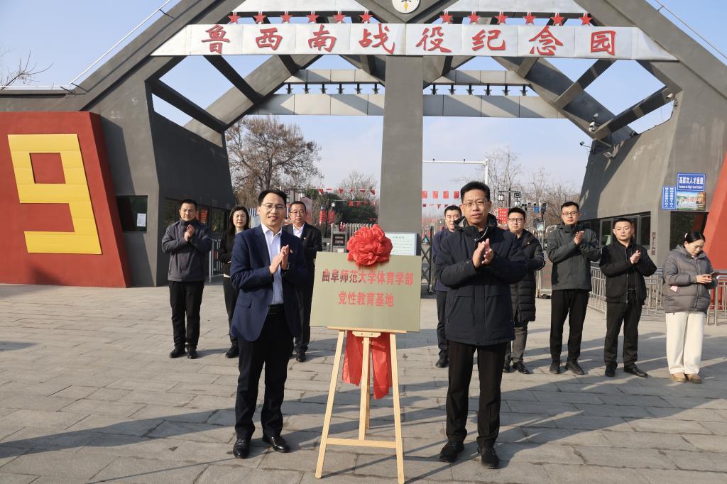 活动伊始,体育学部党委书记许怀祥与济宁市金乡县羊山景区管理服务中心(羊山烈士陵园管理服务中心)主任鲍其伟共同为2048核基地