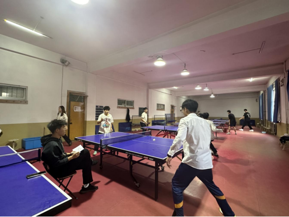 与此同时,乒乓球单打比赛也在紧张有序地进行着。选手们全神贯注,目光紧紧盯着小小的乒乓球,发球、接球、扣杀,动作干净利落。他们在赛场上尽情挥洒汗水,为了胜利全力以赴。