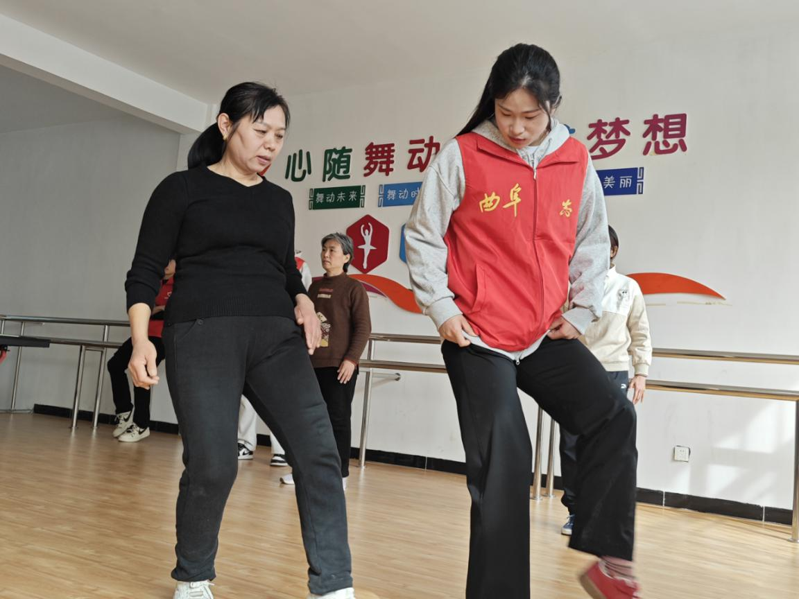 互动环节中,志愿者依据居民在学习过程中的学习进度和掌握程度,对学习较慢的居民一对一指导,现场氛围其乐融融。为了帮助居民们更好地巩固所学知识,志愿者们还精心准备了太极拳动作分解图和教学视频二维码,方便居民们在课后随时学习。