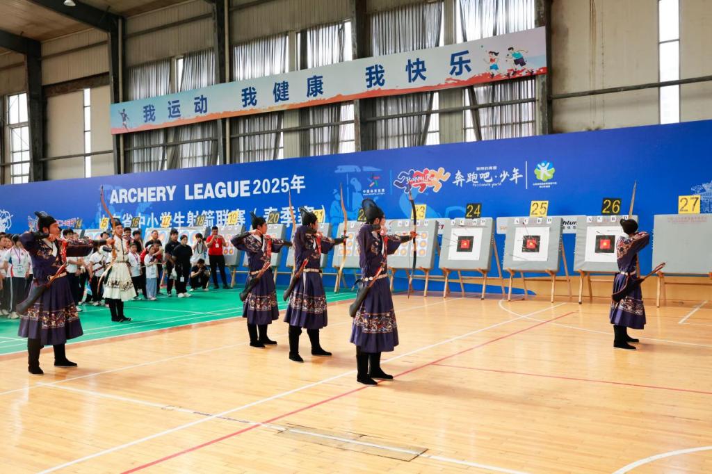 承办,全省16地市200余名中小学生射箭健儿在赛场同场竞技。
