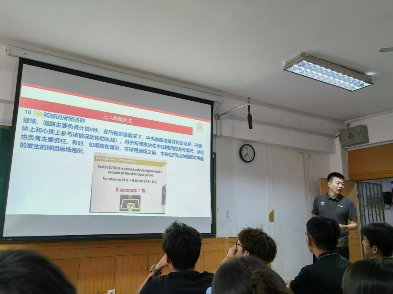 6月21日下午,国家级篮球裁判盛峰老师向学员们讲解了篮球规则等内容,对最新篮球规则进行解读和规则解释,并以裁判员知识体系为标准,层层递进,互为补充,在授课的同时对其中一些学员们提出的问题进行耐心地解答。