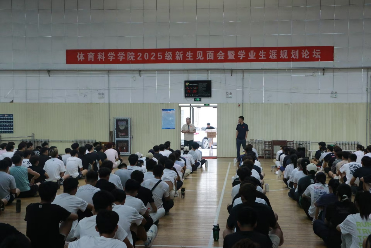 召开2025级军训动员大会暨教官见面会。体育学部党委副书记马振华、2025级新生辅导员栾永鑫,以及军训教官和2025级全体本科生参加了此次大会。