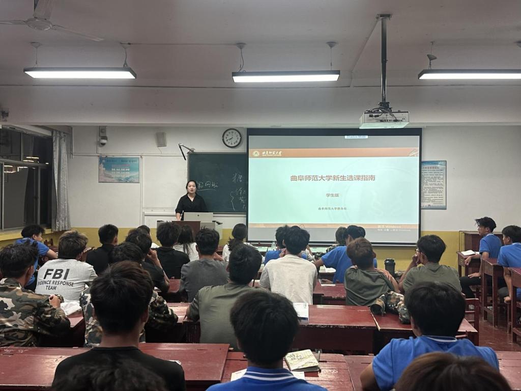 针对全体2025级新生开展选课指导专题教学活动。本次教学由体育科学学院辅导员周晗主讲,全体2025级新生参加。