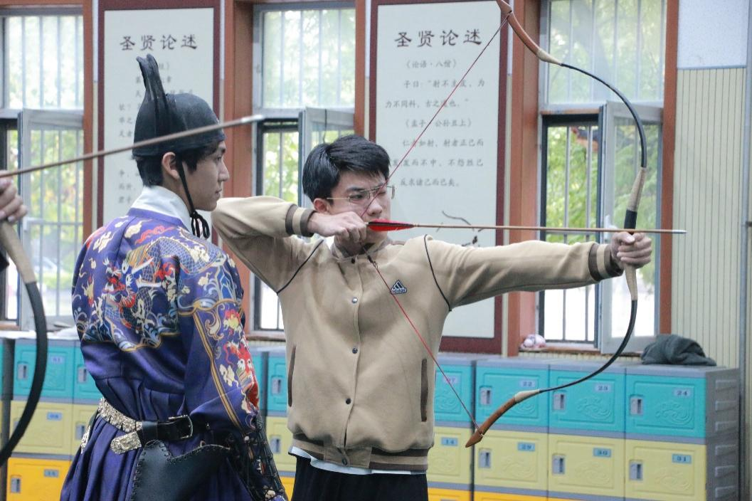 中华传统体育文化体验活动”。射艺和投壶是中华传统体育文化中重要的组成部分,此次活动通过教学和体验使同学们深入了解“射艺”和“投壶”的文化价值和精神内涵,让传统文化在校园内蓬勃发展。
