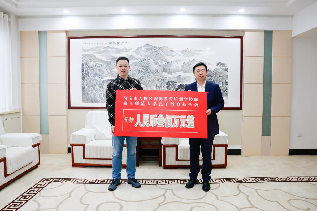 10月17日,曲阜师大2003级体育教育专业校友、山东智博教育投资集团创始人兼董事长、校长王光修重返母校,向学校捐赠300万元人民币,献礼学校建校70周年。学校党委副书记、校长张洪海会见并颁发捐赠证书。